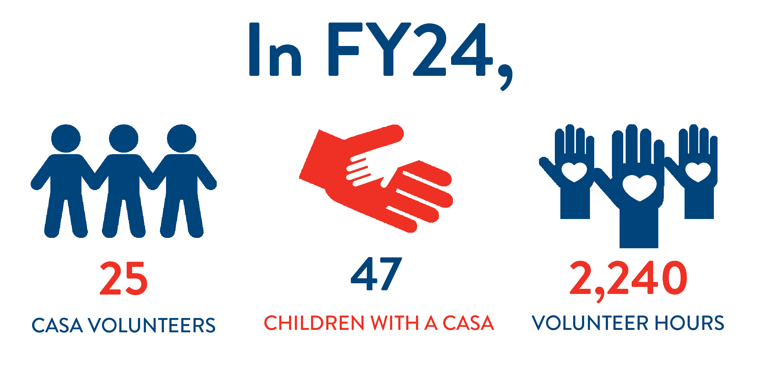 Donate Money - Your donations help support our local CASA program. From training volunteers to creating initiatives that serve our most vulnerable population.